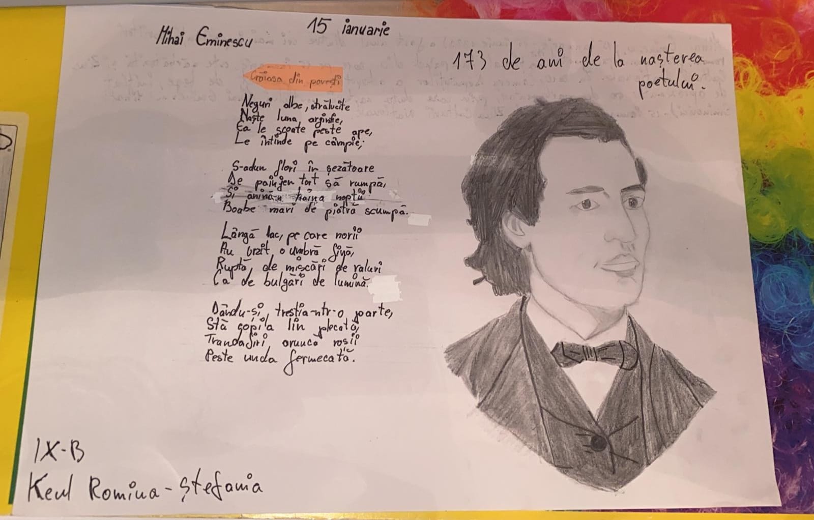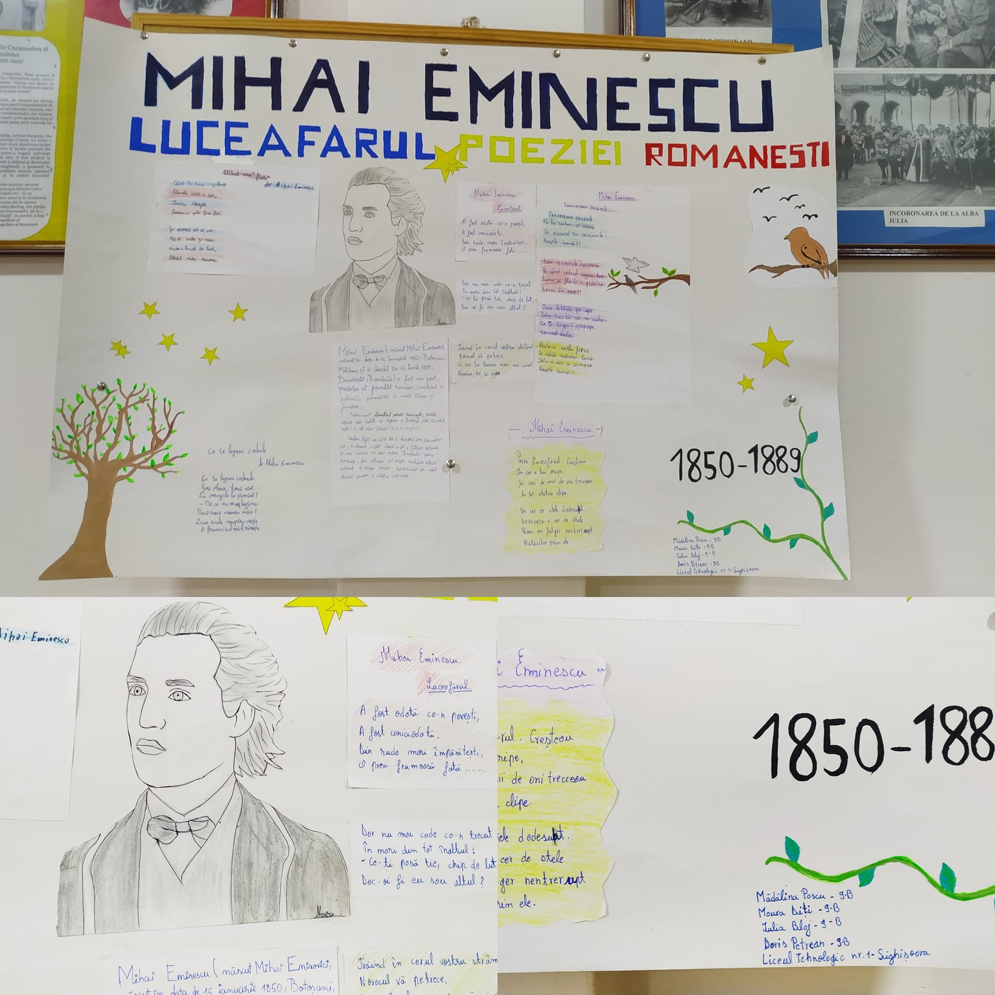 - Realizarea unui panou dedicat poetului Mihai Eminescu de catre elevele, Madalina Pascu, Maura Diti, Iulia Blaj si Doris Petrean.
