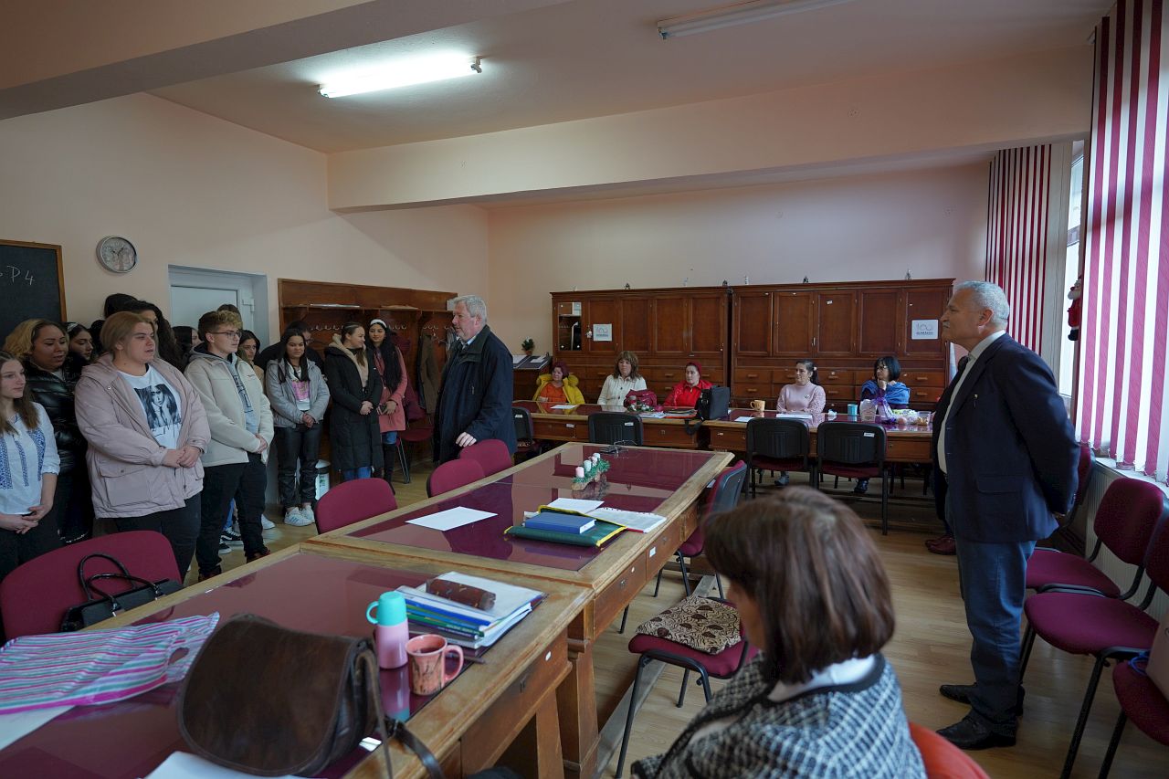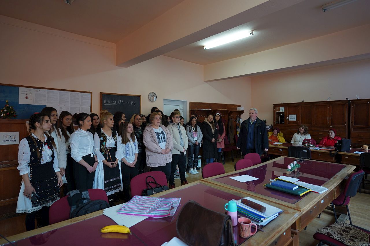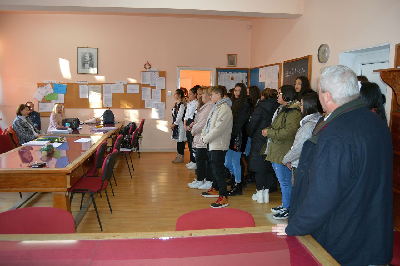 Protopopul bisericii ortodoxe Dan Ovidiu i-a felicitat pe elevi iar la final acestia au fost recompensati cu daruri si diplome.