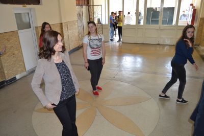 Suntem un grup de profesori si elevi care au venit cu ideea de a dansa in pauza mare.